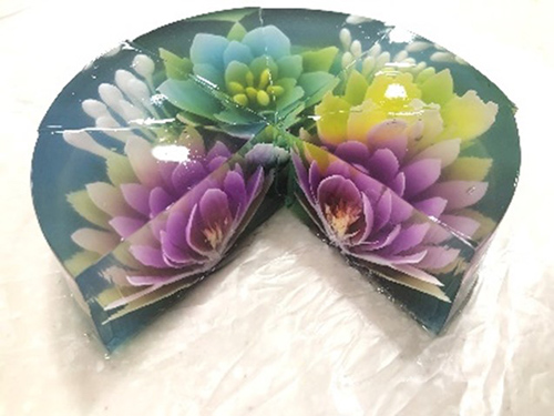 果凍透明度 30% 花型/顏色 40% 立體感/藝術設計感30%